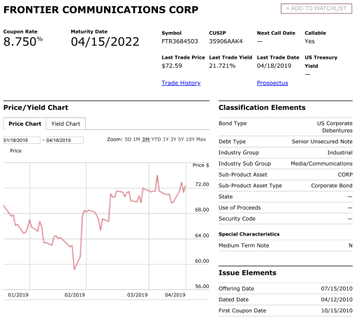 3. Then look at the bond price in the last column showing the two arrow bonds selling for 75 and 61 cents on the dollar, a substantial discount in anybody's book.
