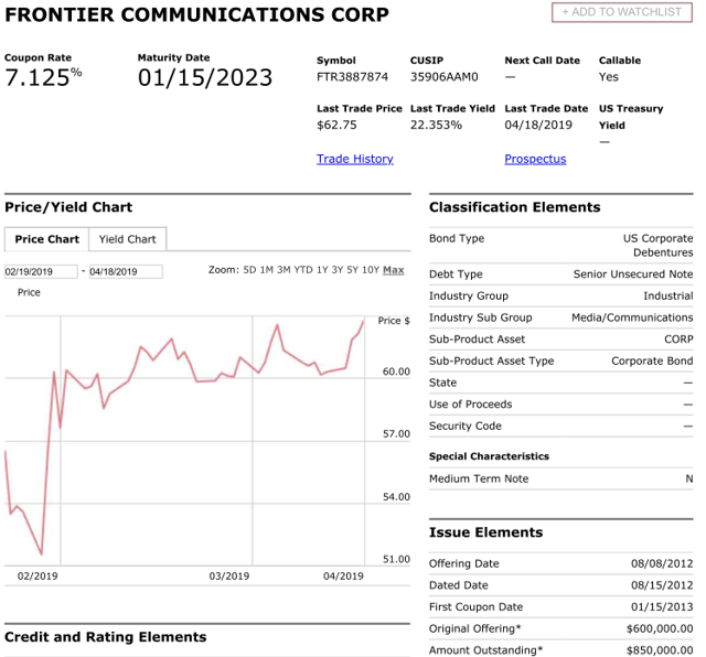 As I have said before if bond buyers loaned FTR money at 4.5x, why wouldn't they do the same at 3.6x? A legitimate question though would be at what interest rate? With the Federal Reserve basically freezing rates for 2019 and former Federal Reserve Chairman Janet Yellen calling for interest rate cuts, this may not be the problem that it seemed to be last year.